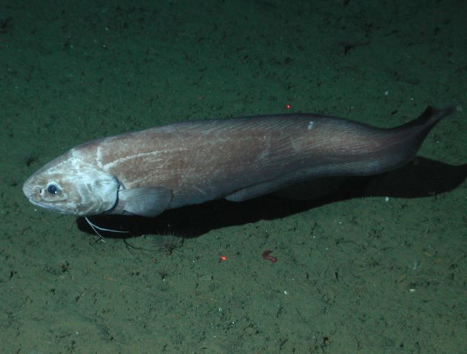 Popis : | Hrujovka velká je běžnou hlubinnou rybou a taktéž jednou z největších hlubinných ryb. Jedinci žijící v Atlantském oceánu jsou světlejší než populace v Pacifiku. Hrujovka velká má podlouhlé, bočně zploštělé tělo s oblou hlavou. Zbarvení je světle až tmavě hnědé. Hřbetní, ocasní a řitní ploutve vytváří jeden ucelený ploutevní lem. Hřbetní ploutev tvoří 135–148 měkkých ploutevních paprsků a řitní ploutev tvoří 101–112 měkkých ploutevních paprsků. |