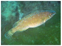 Popis : | Tělo je oválné, hlava je velmi krátká. Oči jsou poměrně velké, ústa jsou velmi malá. Čelisti jsou vysunovatelné, zuby jsou na obou čelistech, jen v jedné řadě. Okraj přední skřetové kosti je jemně ozubený. Postraní čára kopíruje linii hřbetu, je tvořena 33 – 37 šupinami. Hřbetní ploutev je velmi dlouhá, tvoří ji 18 – 20 tvrdých a 5 – 7 měkkých ploutevních paprsků. Na rozdíl od ostatních pyskounů, u tohoto není část s měkkými paprsky vyšší a tvrdé paprsky vypadají jako trny. V řitní ploutvi je 4 – 6 tvrdých, trnitých a 6 – 8 měkkých paprsků. Zbarvení není tak různé jako u jiných pyskounů. Hřbet je hnědočervený, boky žlutohnědé, břišní strana stříbřitě lesklá. Samci připravení k páření mají na hřbetě a na bocích modré skvrny a na hlavě 2 modré proužky. |